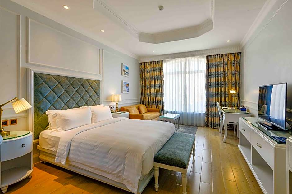 This spacious suite consists of 1 living room, 1 separate bedroom and 2 bathrooms with a walk-in shower and free toiletries. The air-conditioned suite provides a flat-screen TV, a mini-bar, a seating area, a dining area as well as sea views. The unit offers 1 bed.